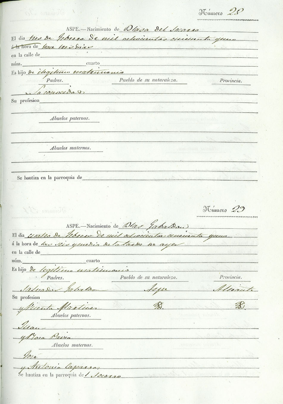 Registro civil de nacidos de la Villa de Aspe