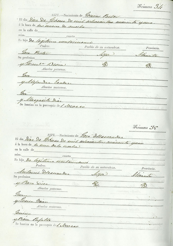 Registro civil de nacidos de la Villa de Aspe