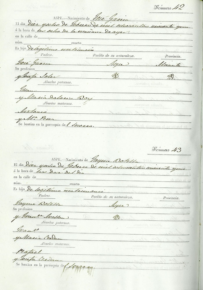 Registro civil de nacidos de la Villa de Aspe