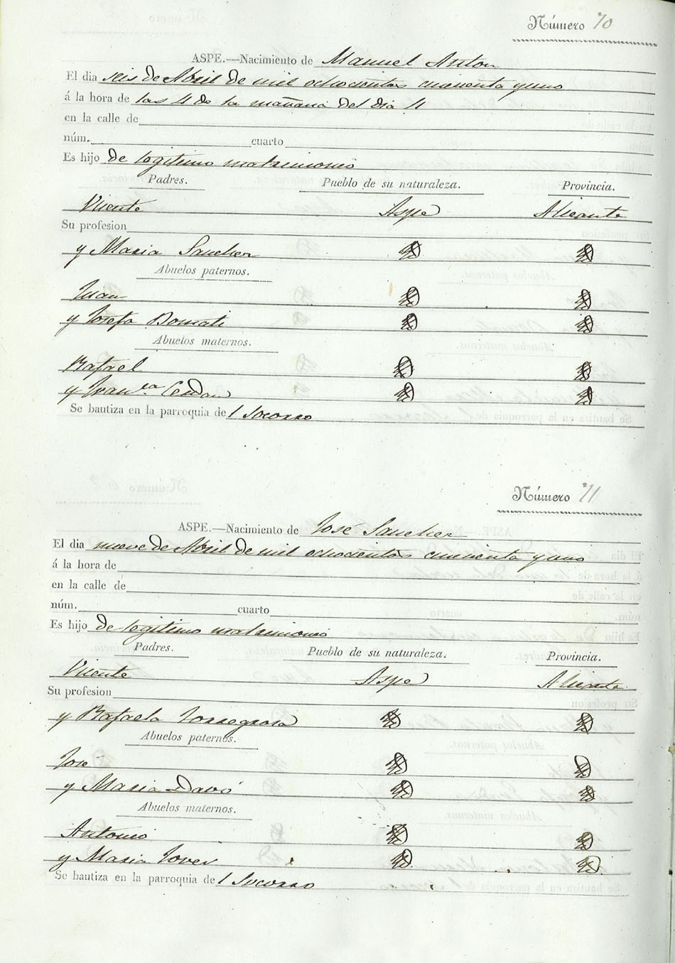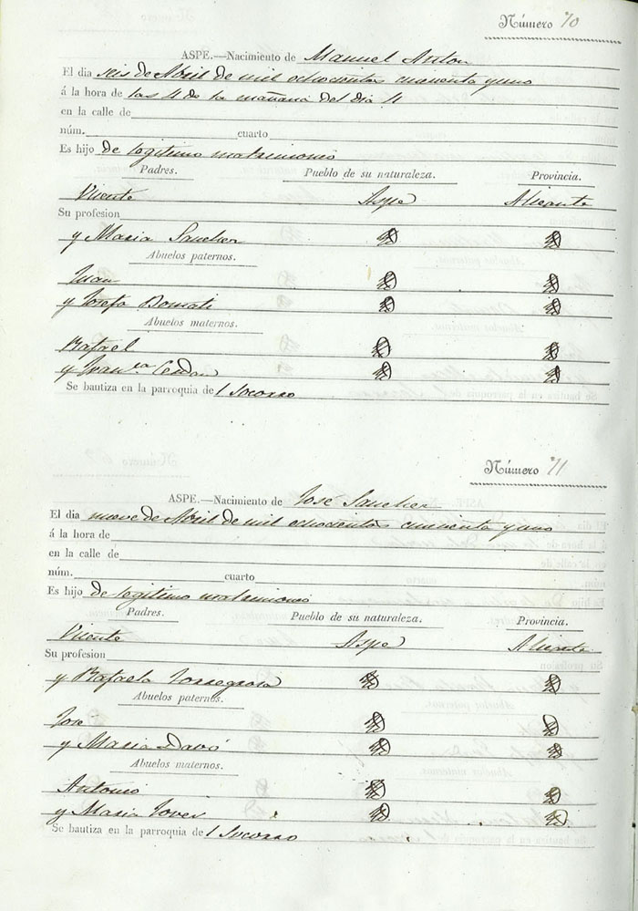 Registro civil de nacidos de la Villa de Aspe
