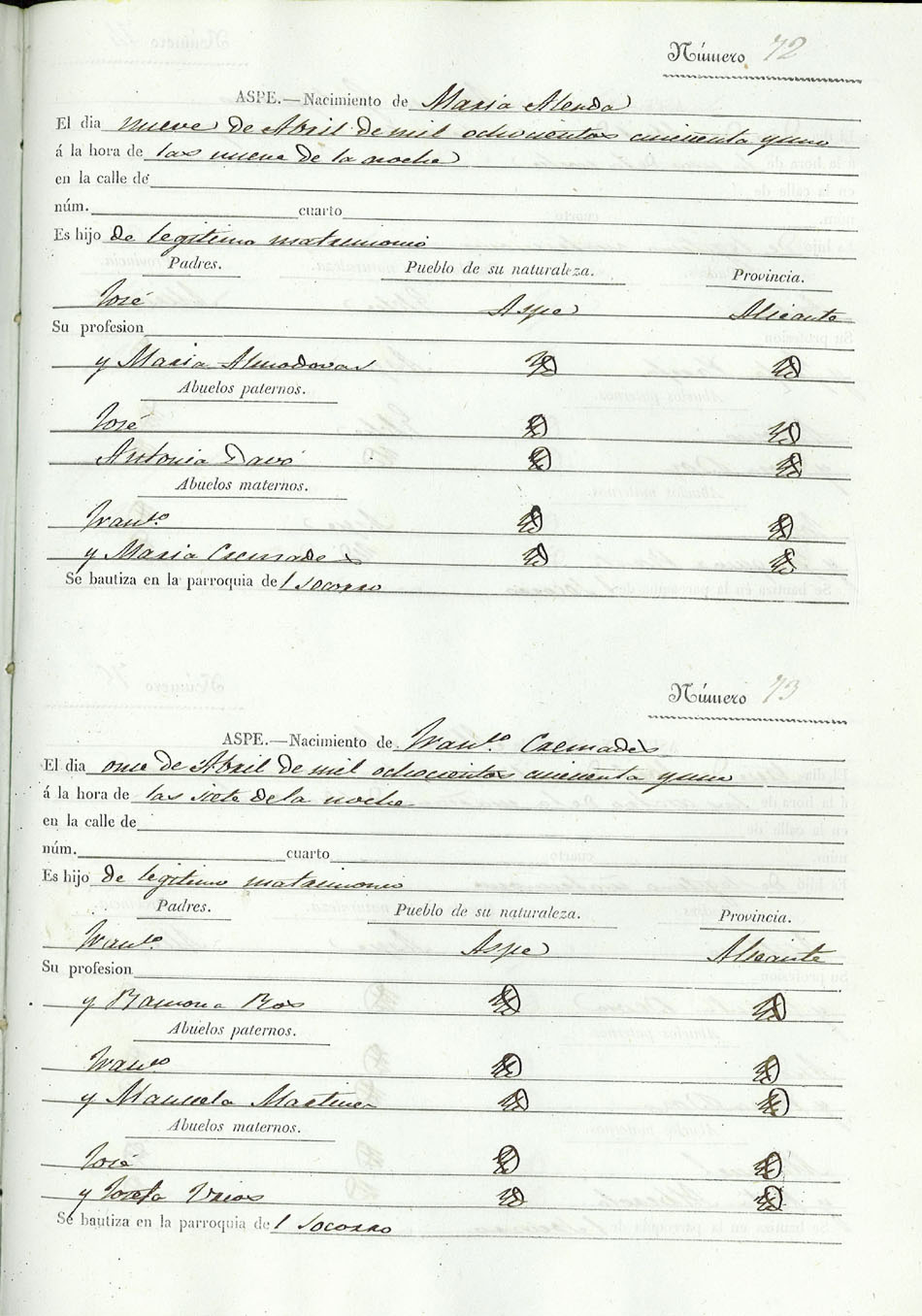 Registro civil de nacidos de la Villa de Aspe