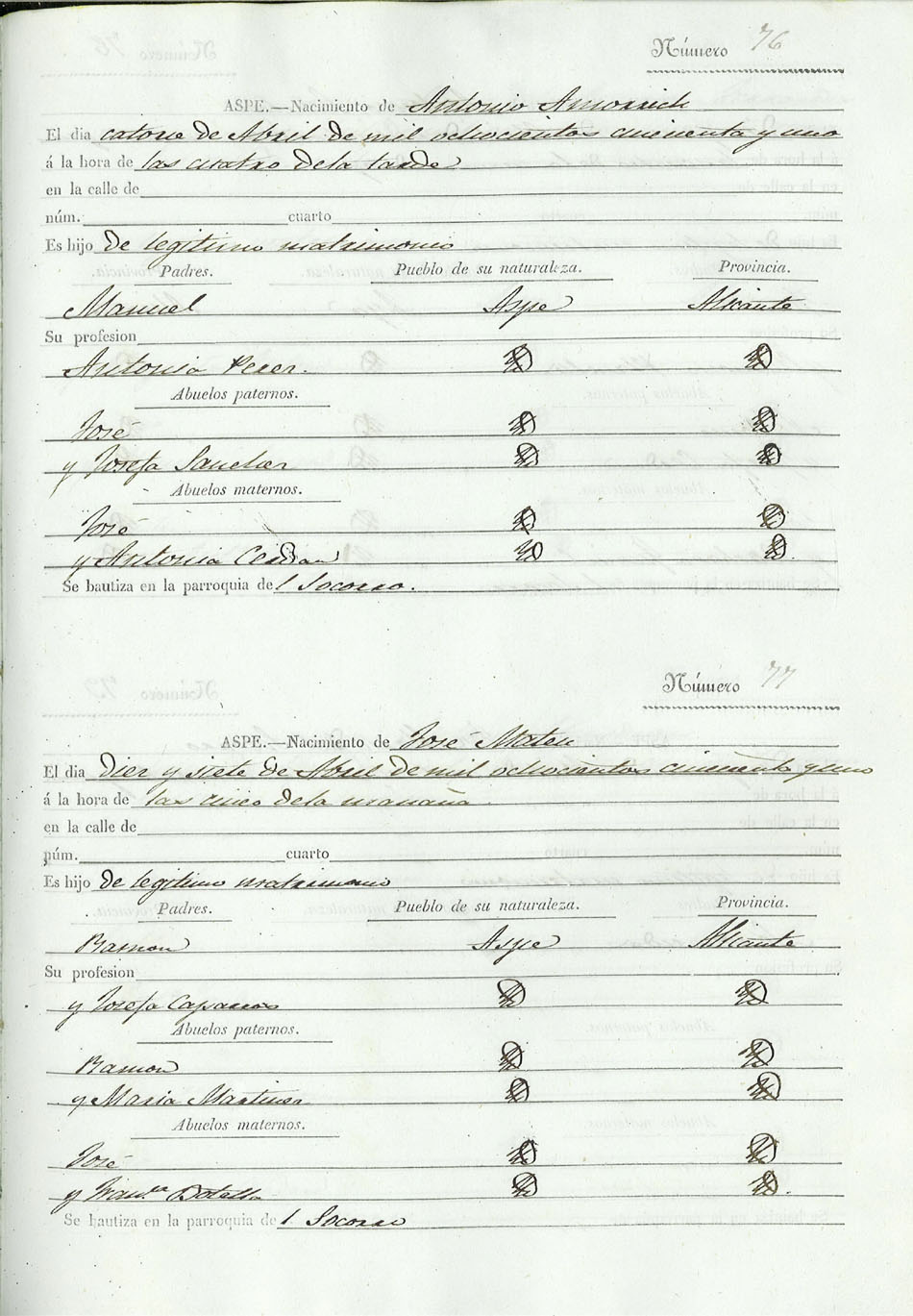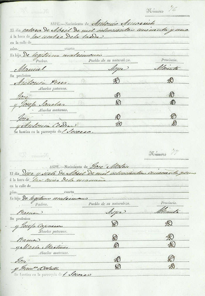 Registro civil de nacidos de la Villa de Aspe