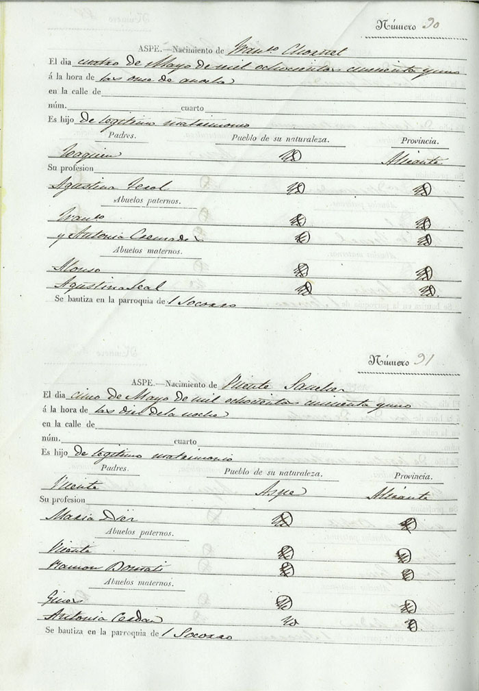 Registro civil de nacidos de la Villa de Aspe