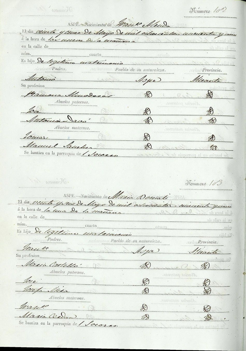 Registro civil de nacidos de la Villa de Aspe