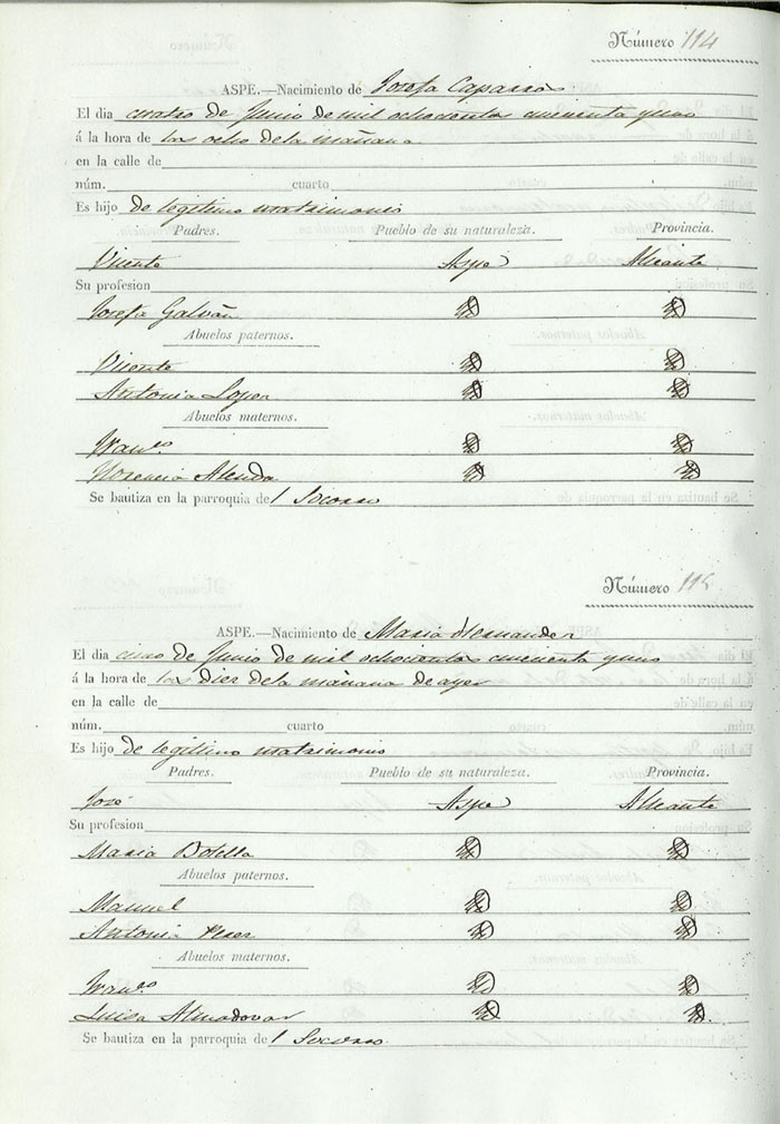 Registro civil de nacidos de la Villa de Aspe