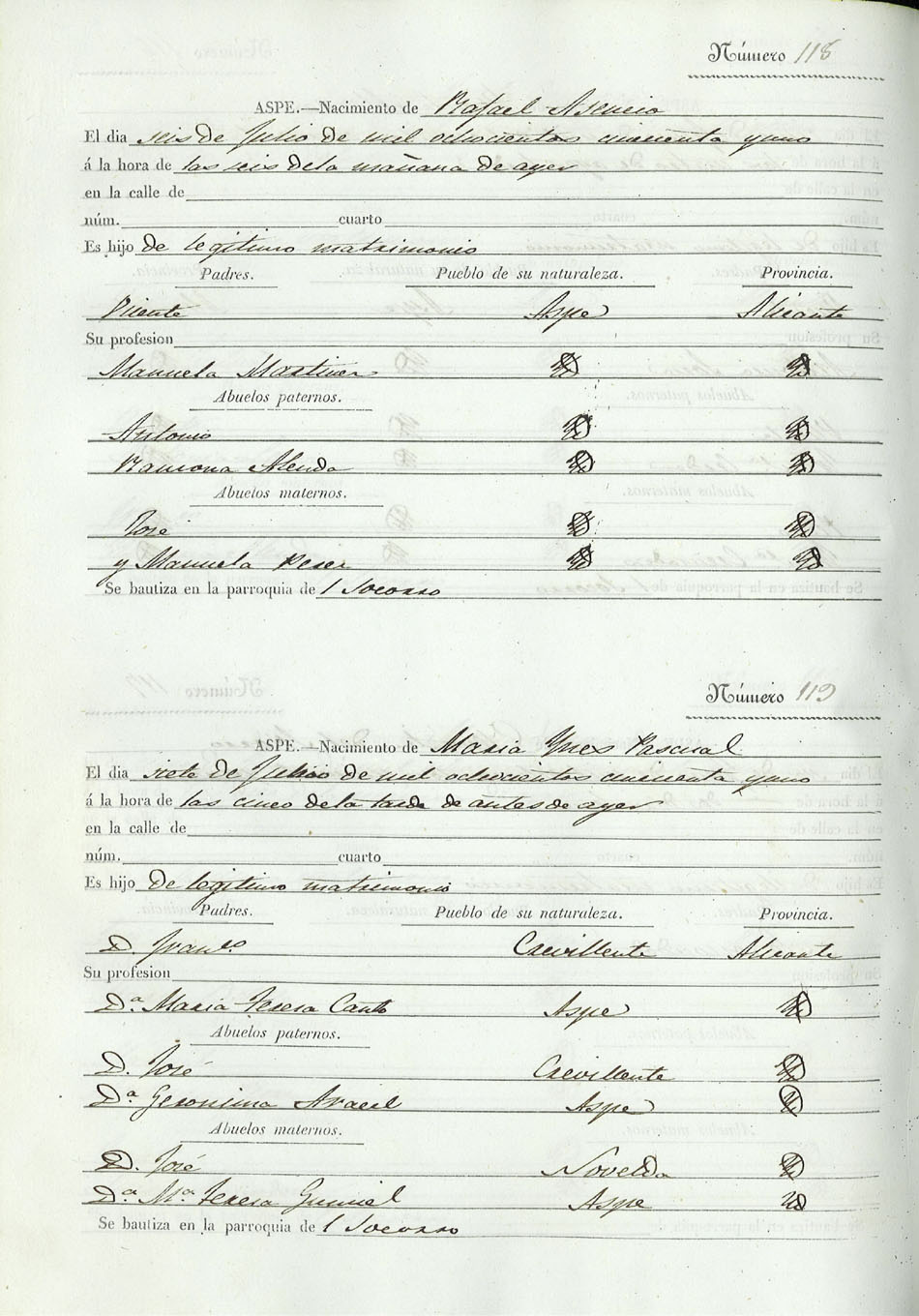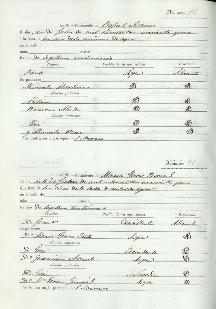 Registro civil de nacidos de la Villa de Aspe