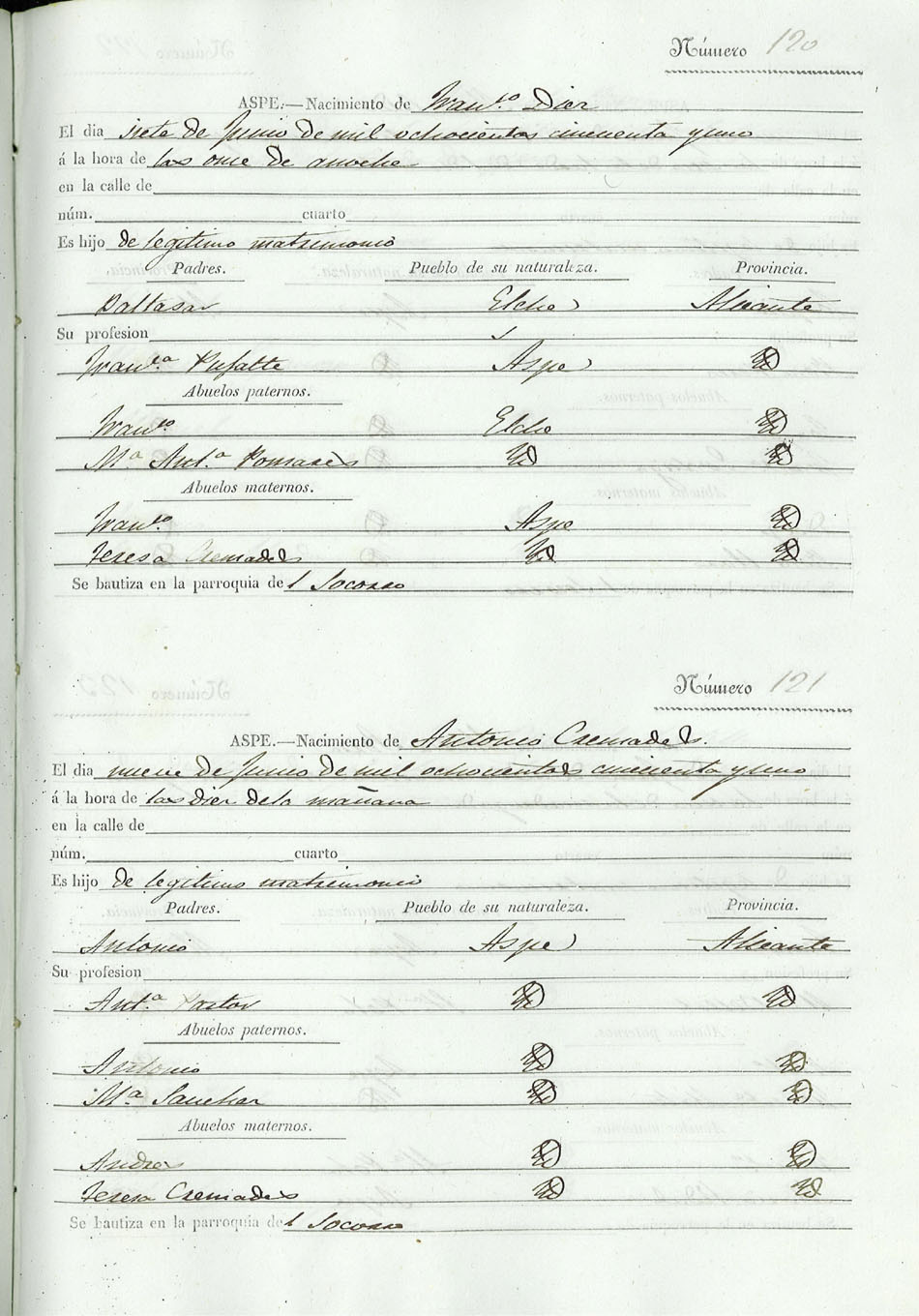 Registro civil de nacidos de la Villa de Aspe