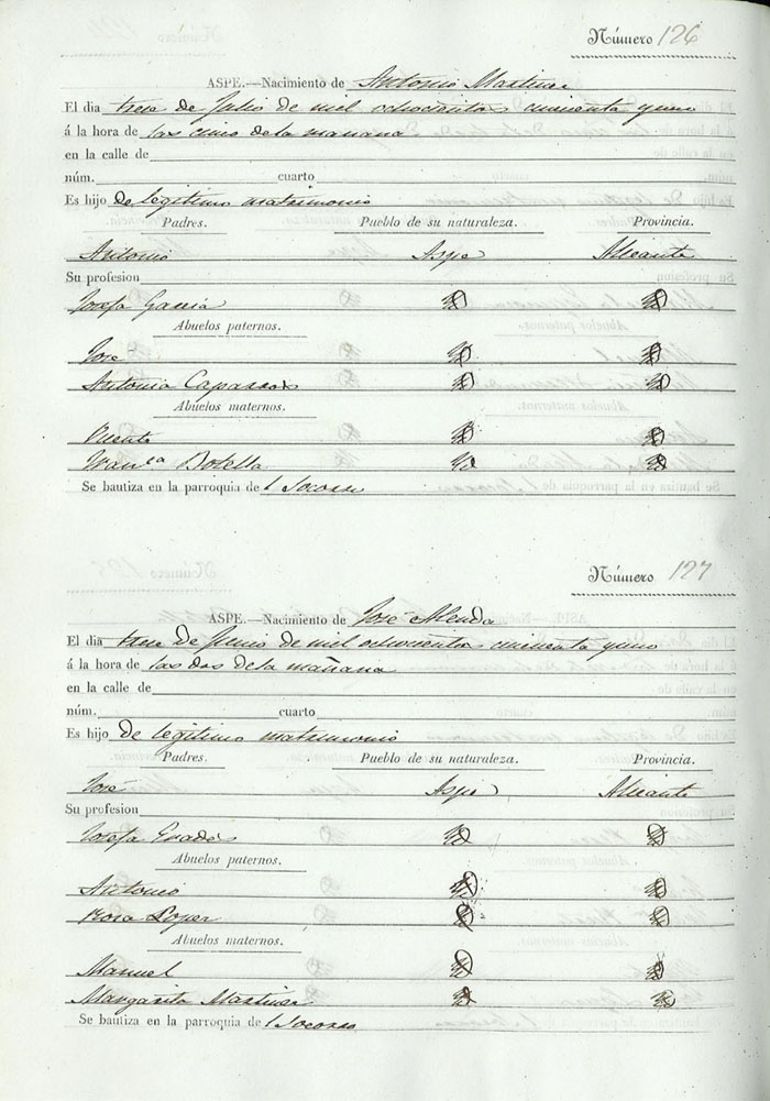 Registro civil de nacidos de la Villa de Aspe