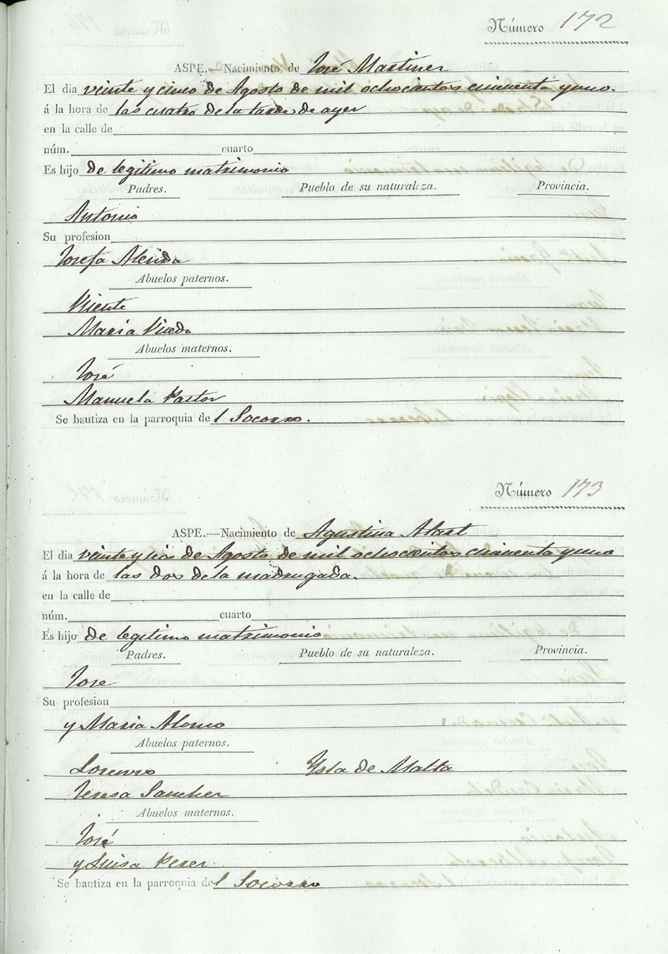 Registro civil de nacidos de la Villa de Aspe