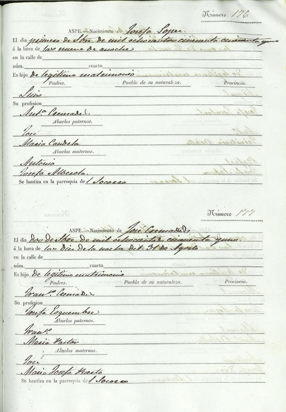 Registro civil de nacidos de la Villa de Aspe