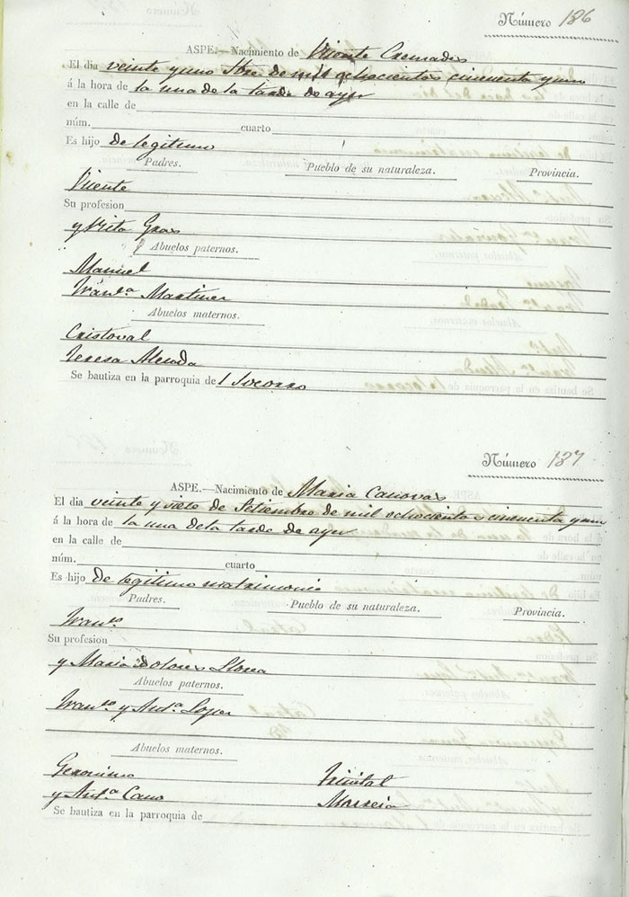 Registro civil de nacidos de la Villa de Aspe
