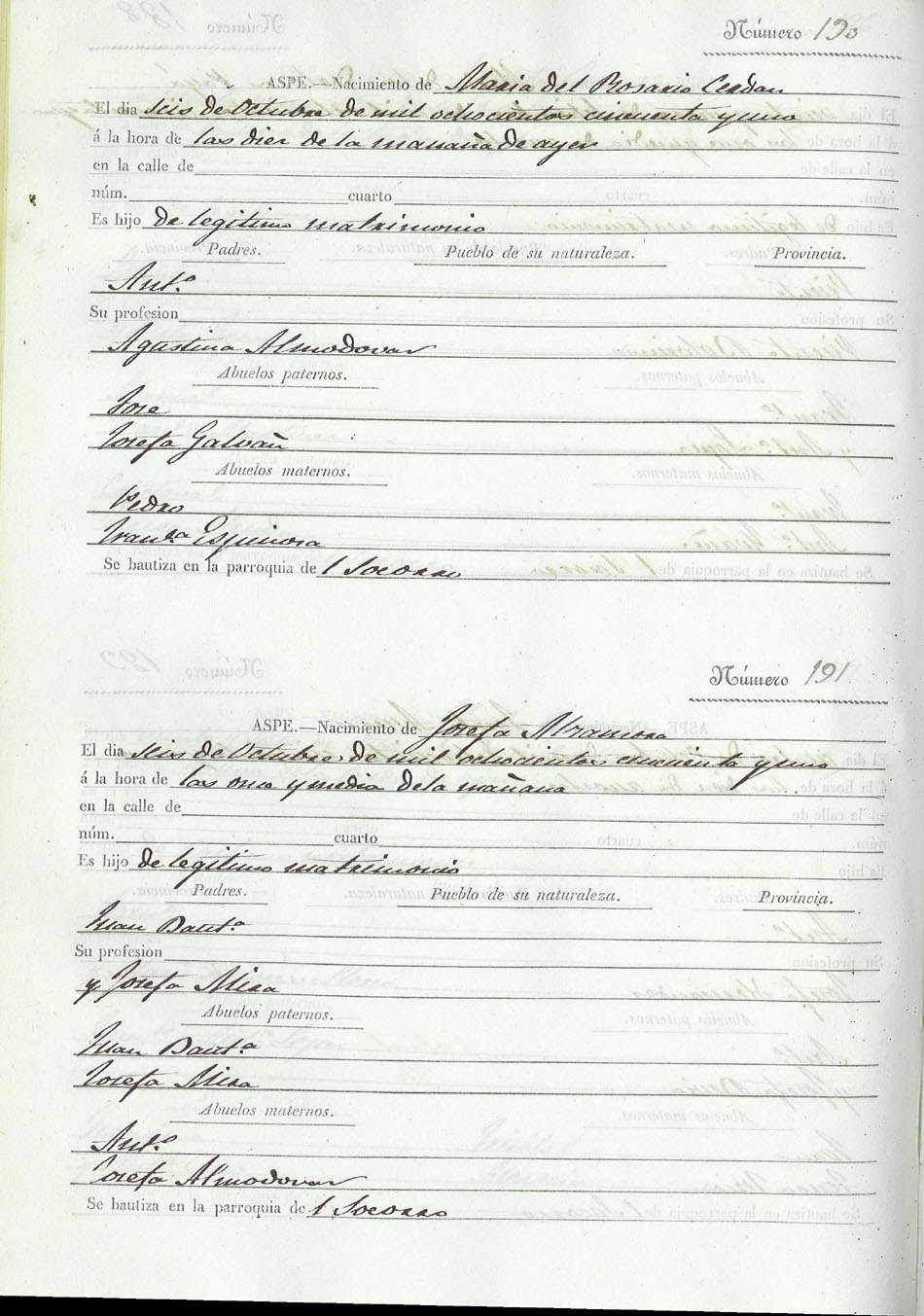 Registro civil de nacidos de la Villa de Aspe