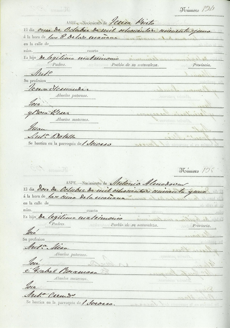 Registro civil de nacidos de la Villa de Aspe