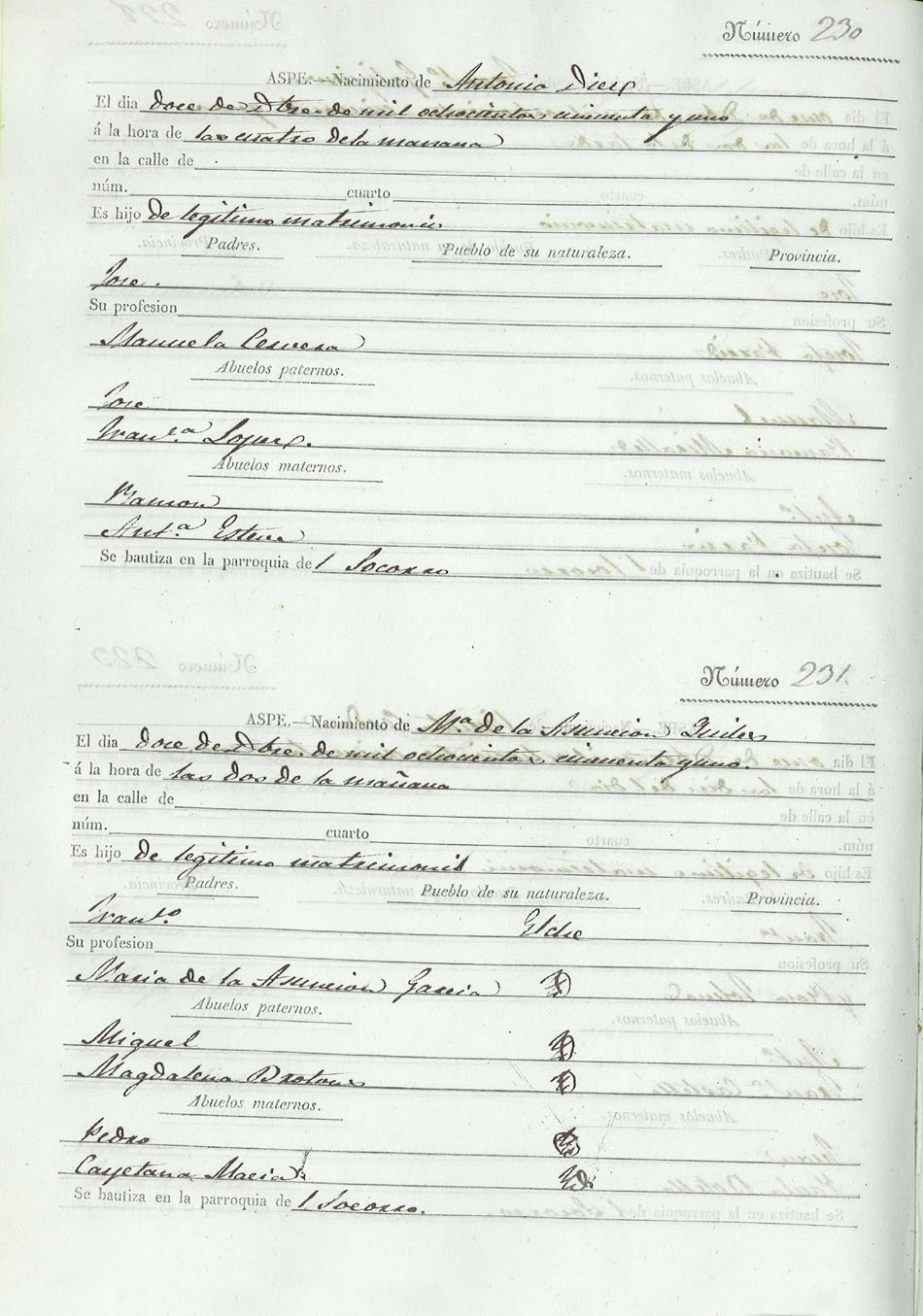 Registro civil de nacidos de la Villa de Aspe