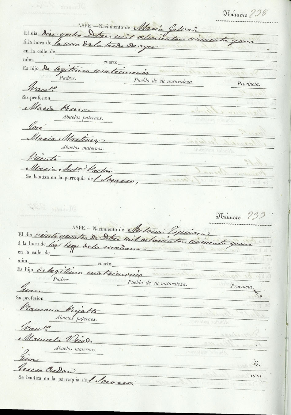 Registro civil de nacidos de la Villa de Aspe
