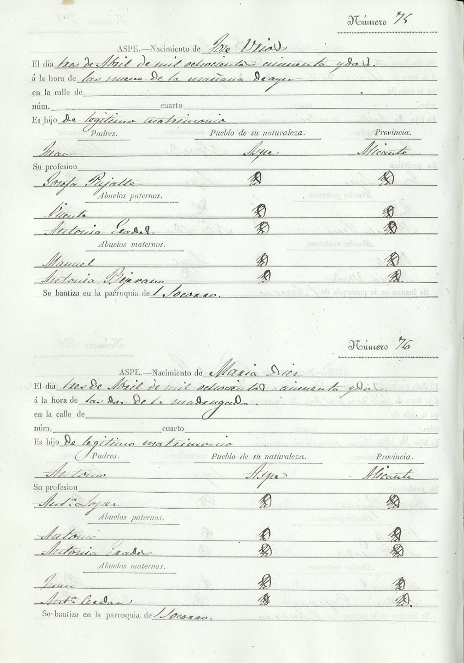 Registro civil de nacidos de la Villa de Aspe