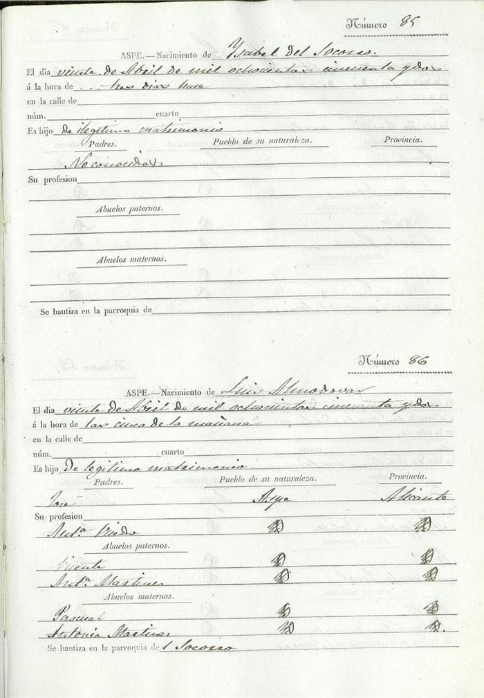 Registro civil de nacidos de la Villa de Aspe