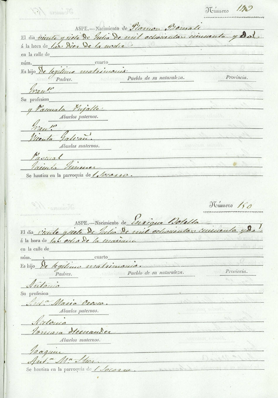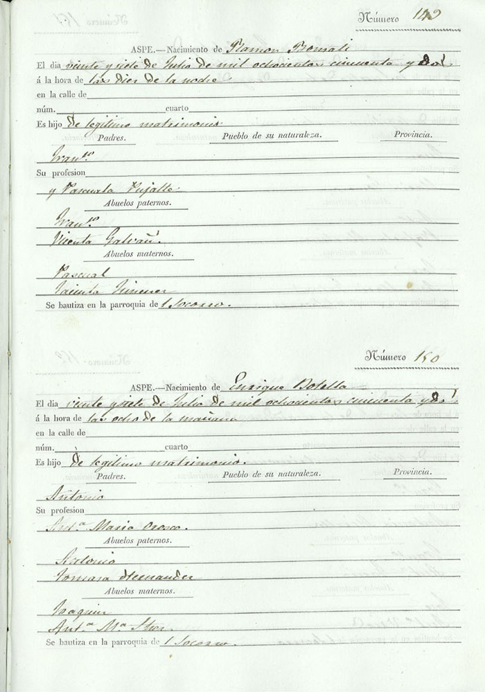 Registro civil de nacidos de la Villa de Aspe