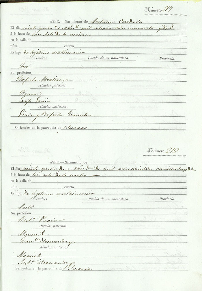 Registro civil de nacidos de la Villa de Aspe