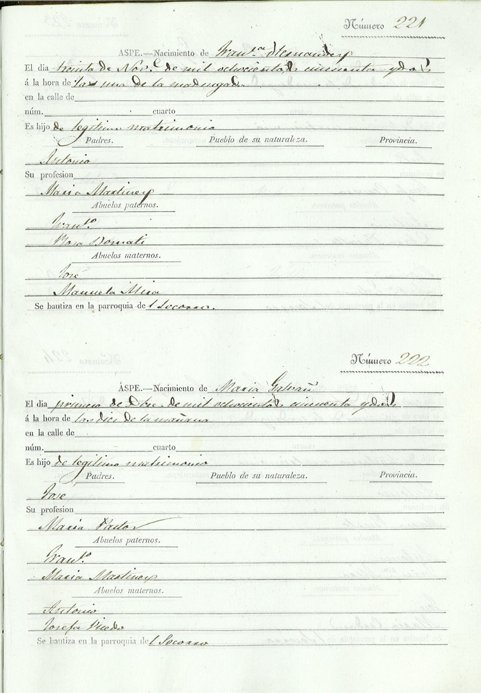 Registro civil de nacidos de la Villa de Aspe