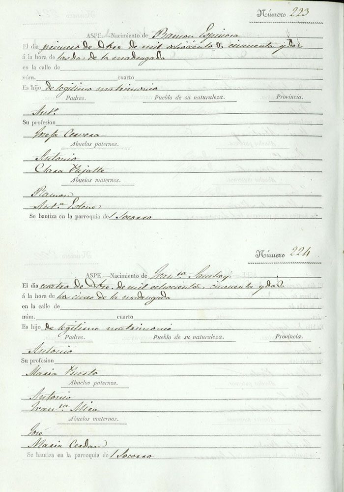 Registro civil de nacidos de la Villa de Aspe