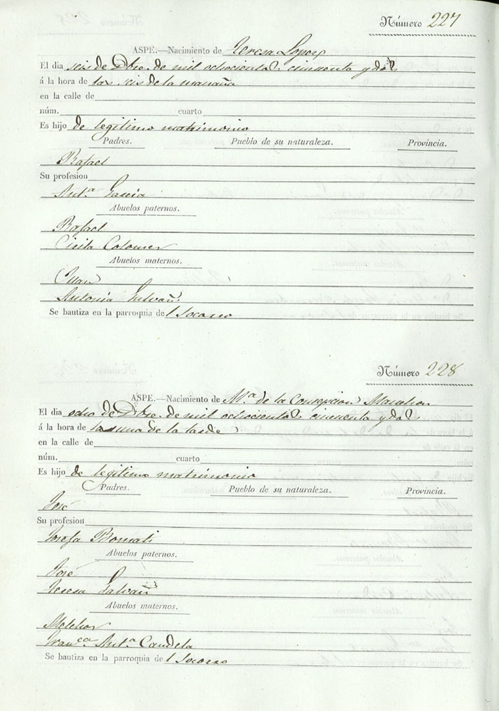 Registro civil de nacidos de la Villa de Aspe