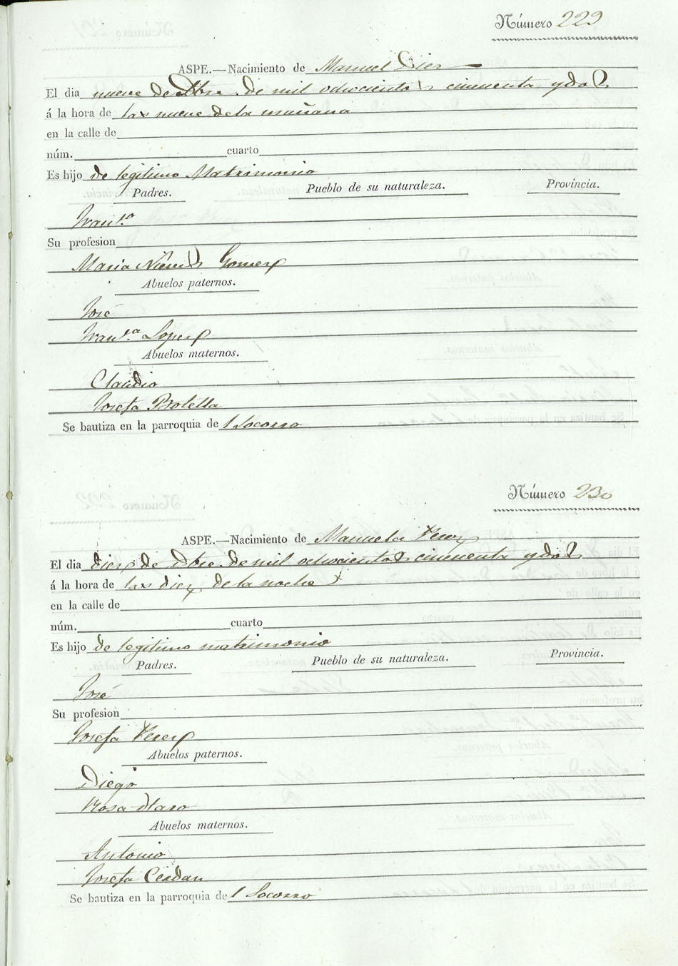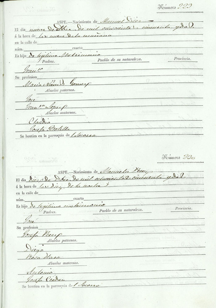 Registro civil de nacidos de la Villa de Aspe
