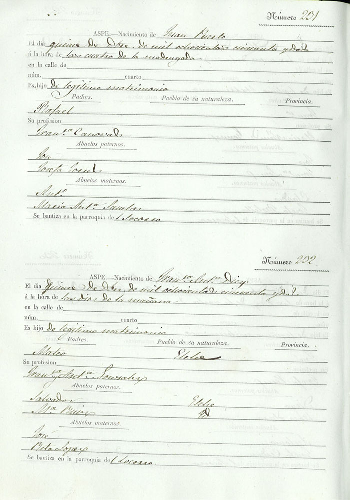 Registro civil de nacidos de la Villa de Aspe