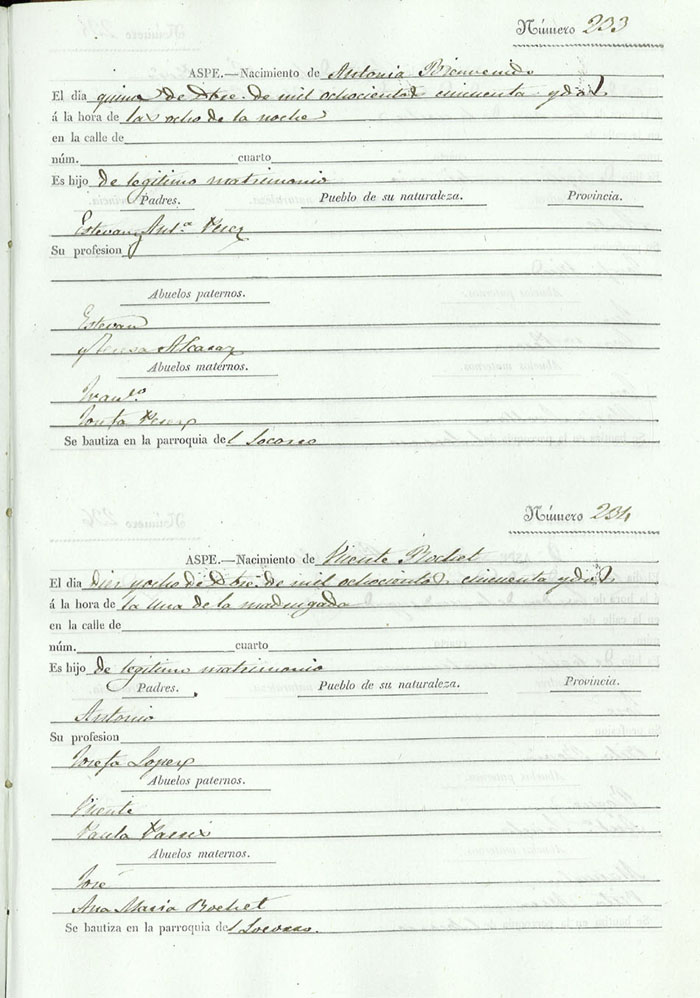 Registro civil de nacidos de la Villa de Aspe