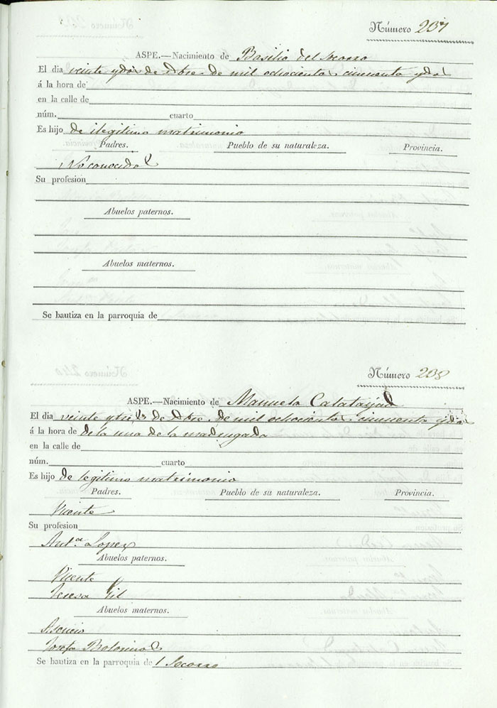 Registro civil de nacidos de la Villa de Aspe