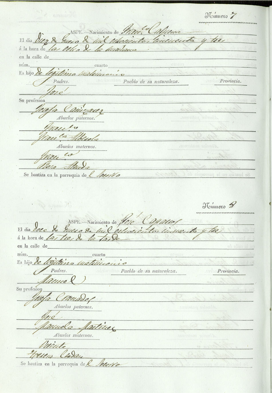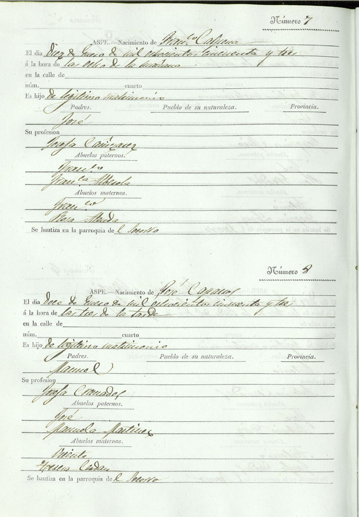 Registro civil de nacidos de la Villa de Aspe