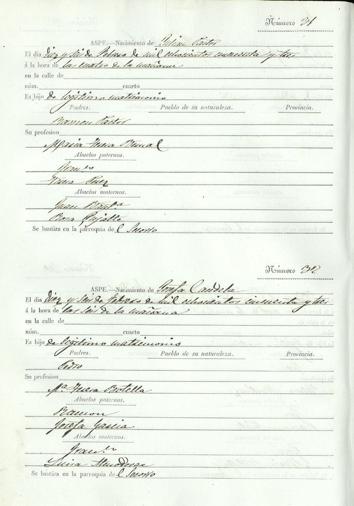 Registro civil de nacidos de la Villa de Aspe