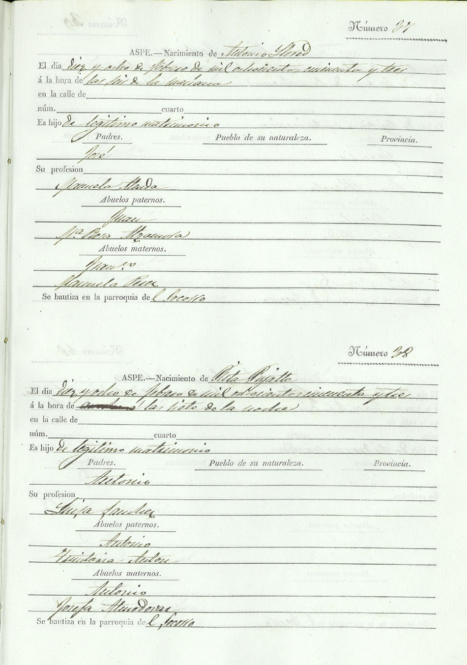 Registro civil de nacidos de la Villa de Aspe
