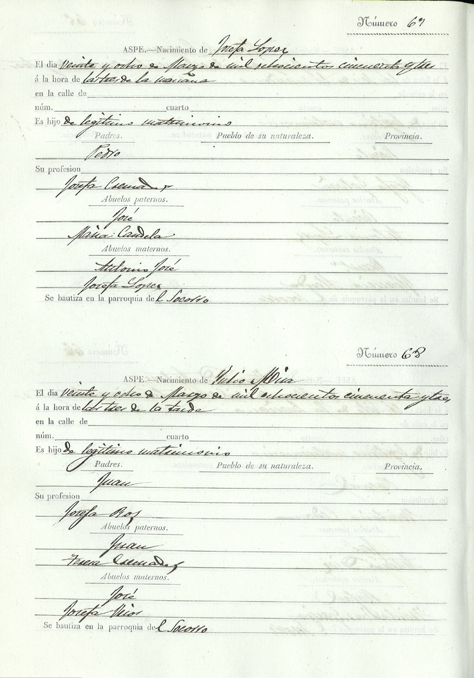 Registro civil de nacidos de la Villa de Aspe