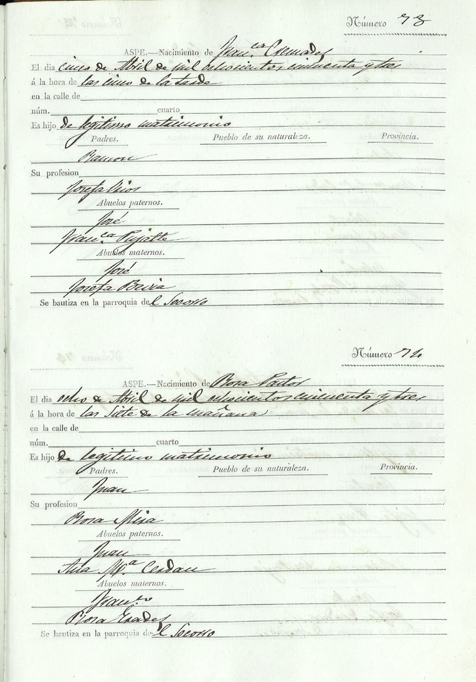Registro civil de nacidos de la Villa de Aspe