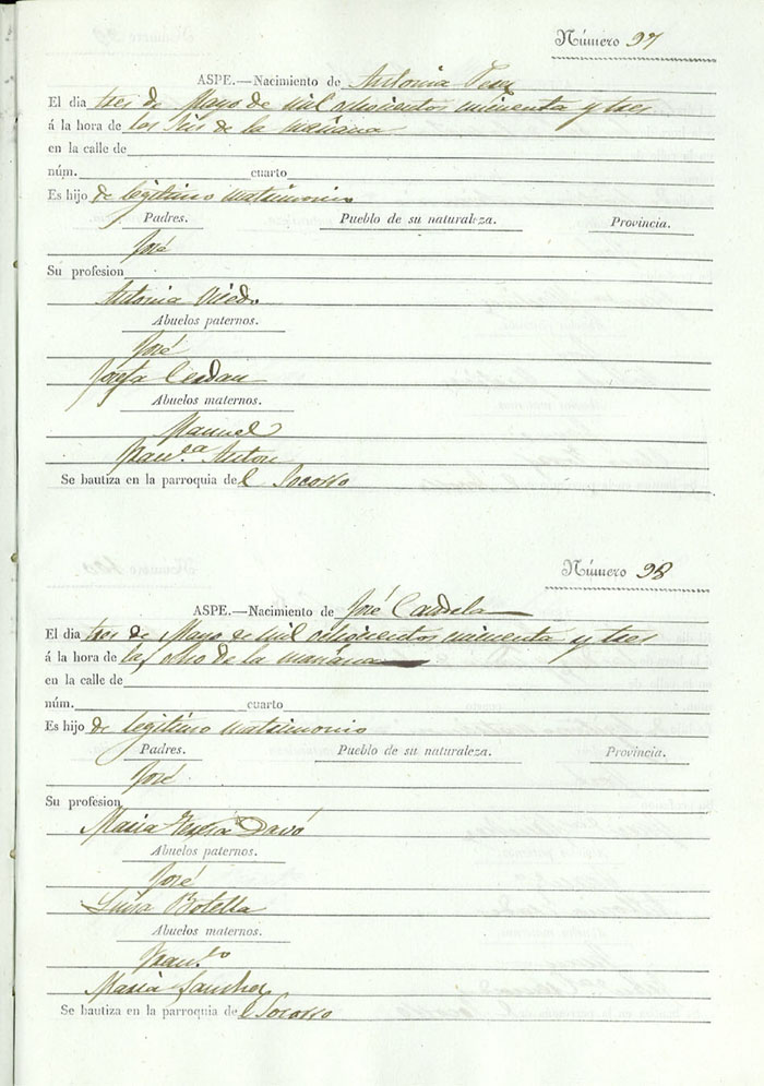 Registro civil de nacidos de la Villa de Aspe