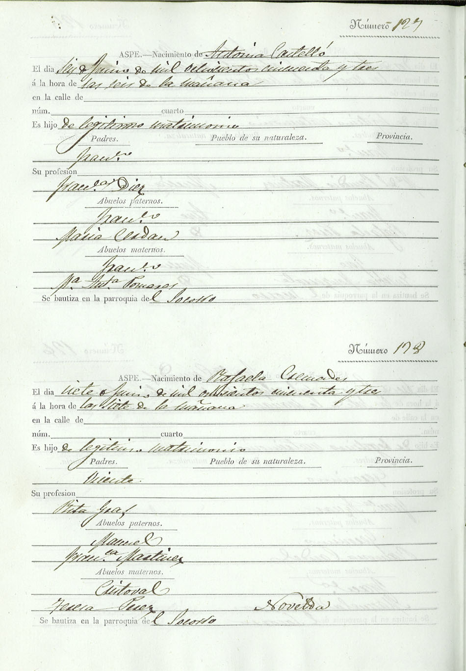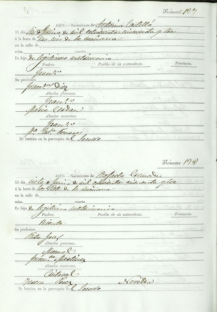 Registro civil de nacidos de la Villa de Aspe