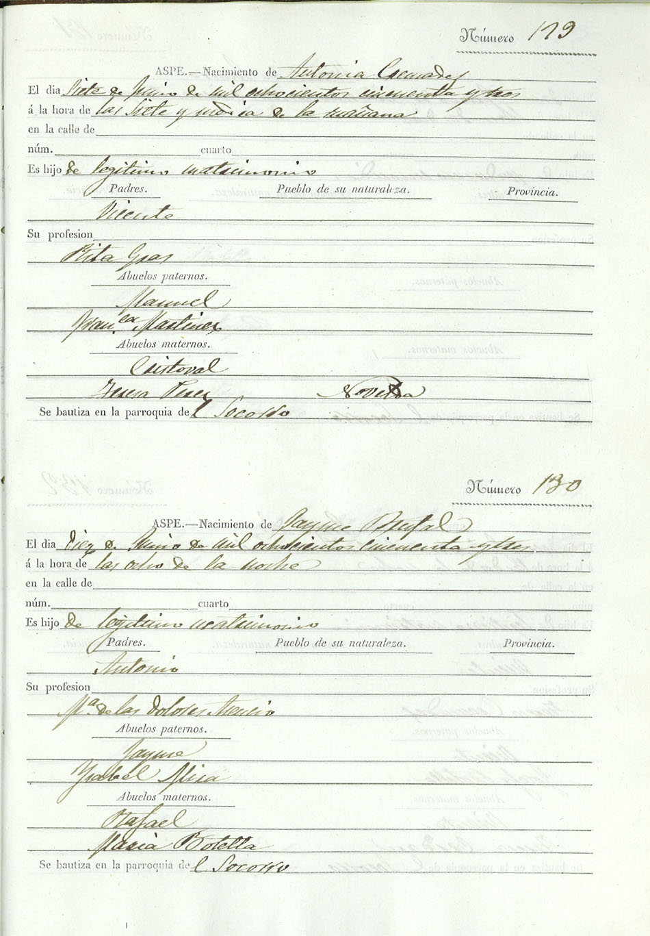 Registro civil de nacidos de la Villa de Aspe