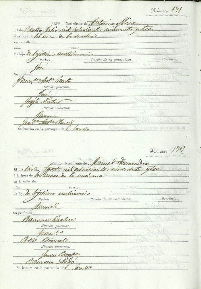Registro civil de nacidos de la Villa de Aspe