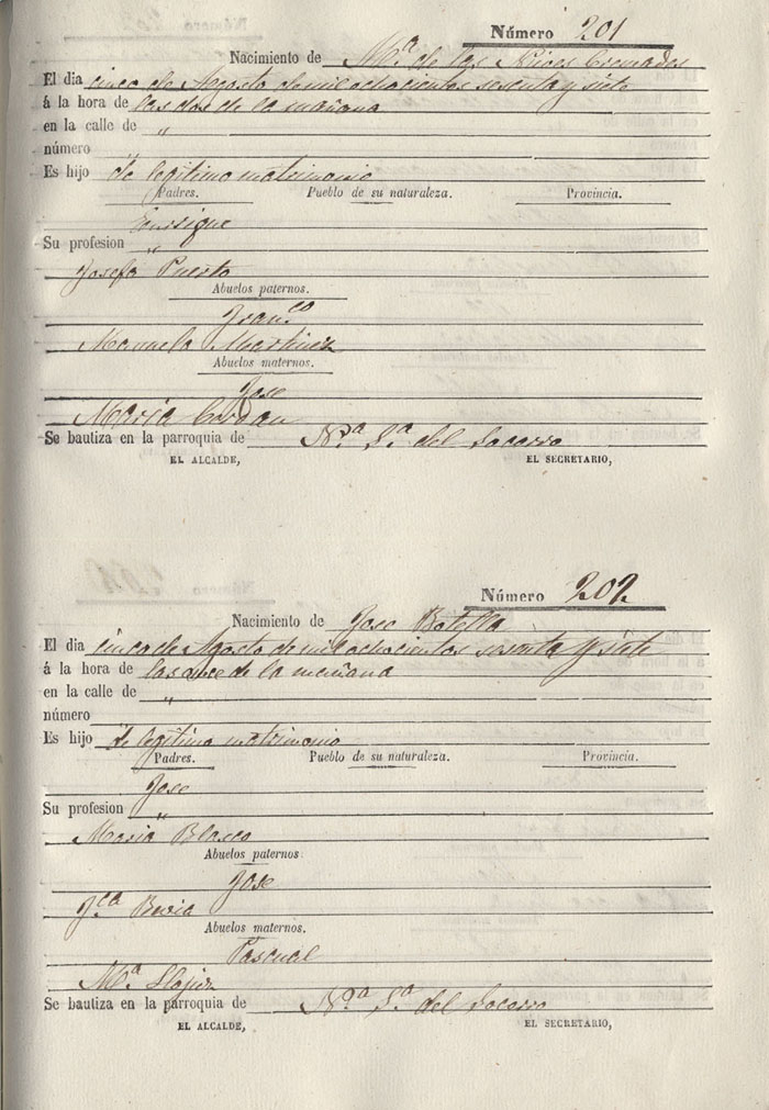 Registro civil de nacidos de la Villa de Aspe