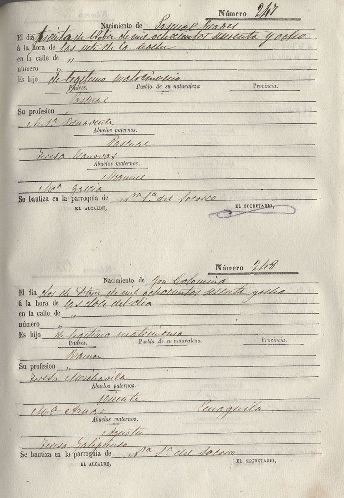 Registro civil de nacidos de la Villa de Aspe