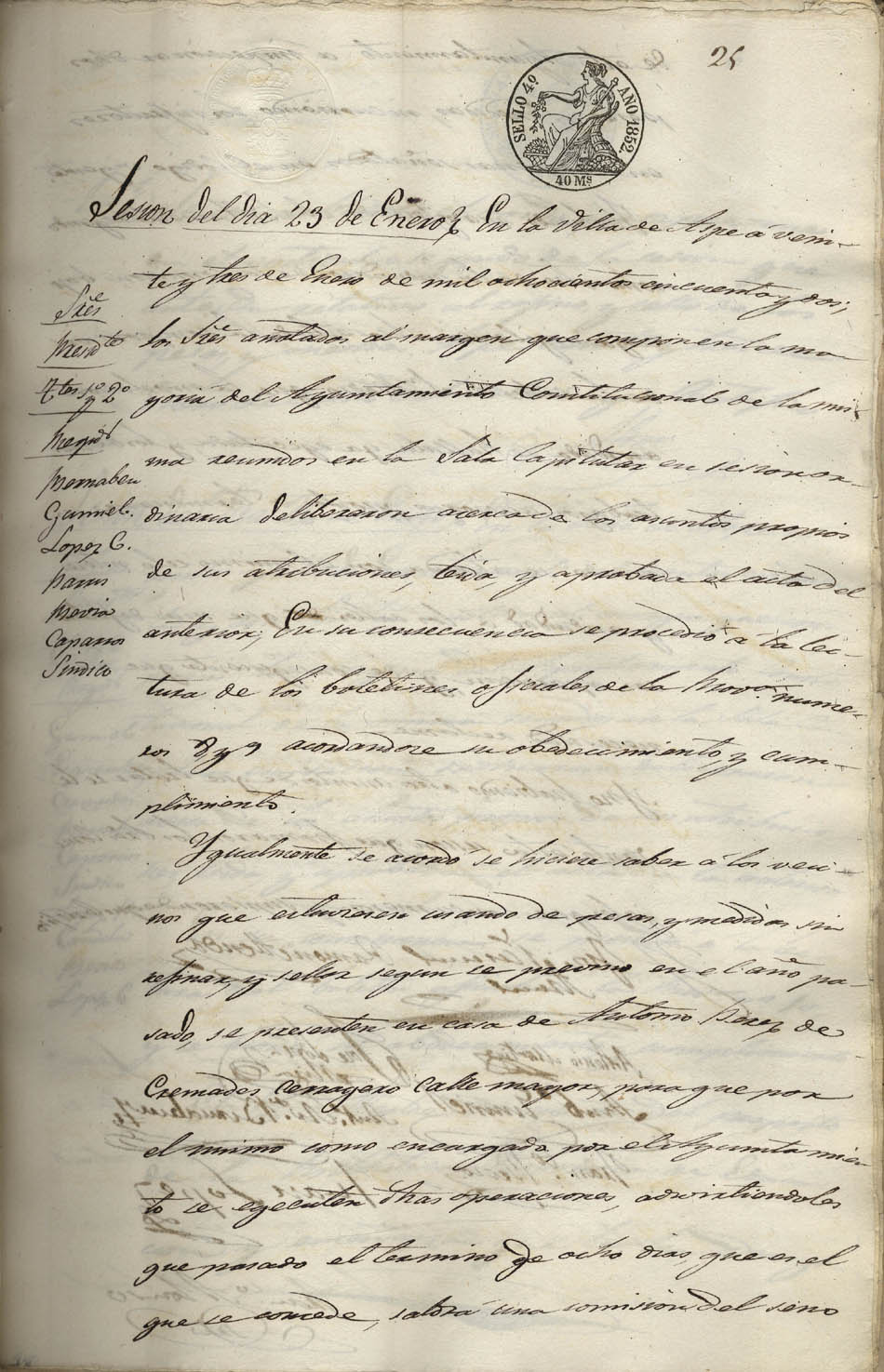Actas de Pleno, 1852