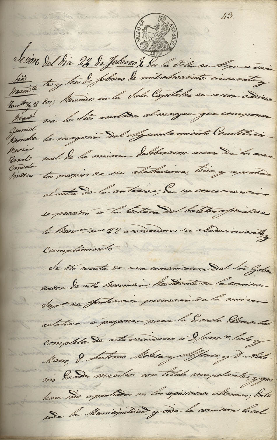 Actas de Pleno, 1852