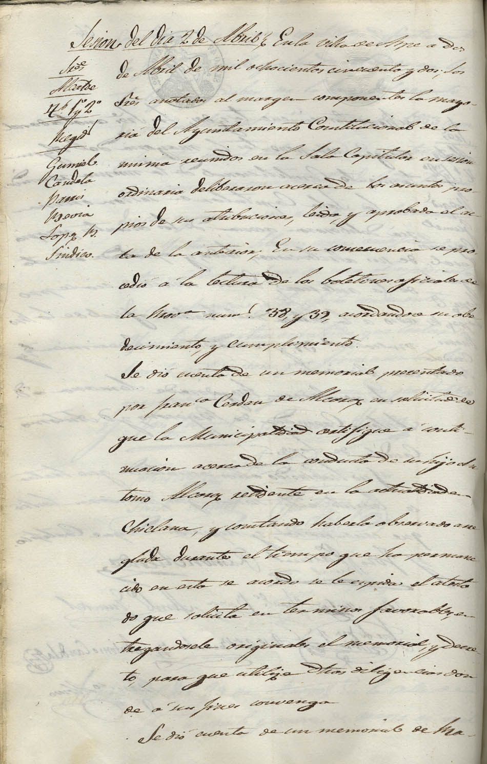 Actas de Pleno, 1852