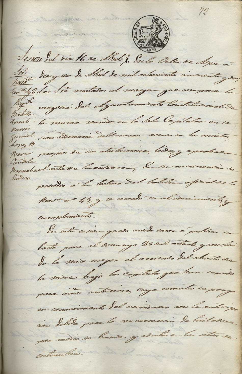 Actas de Pleno, 1852