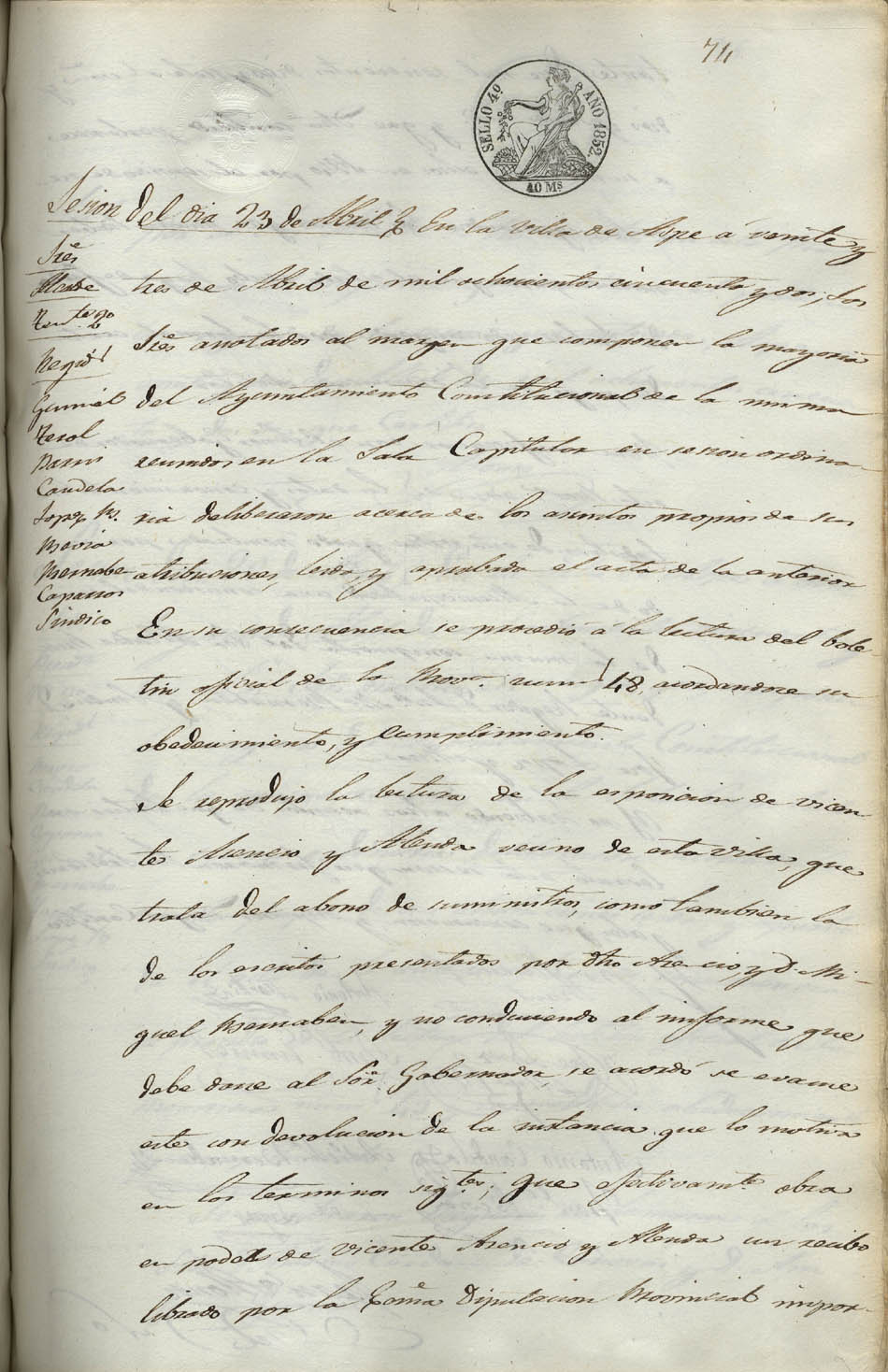 Actas de Pleno, 1852