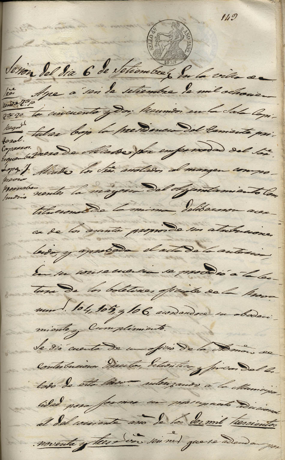 Actas de Pleno, 1852