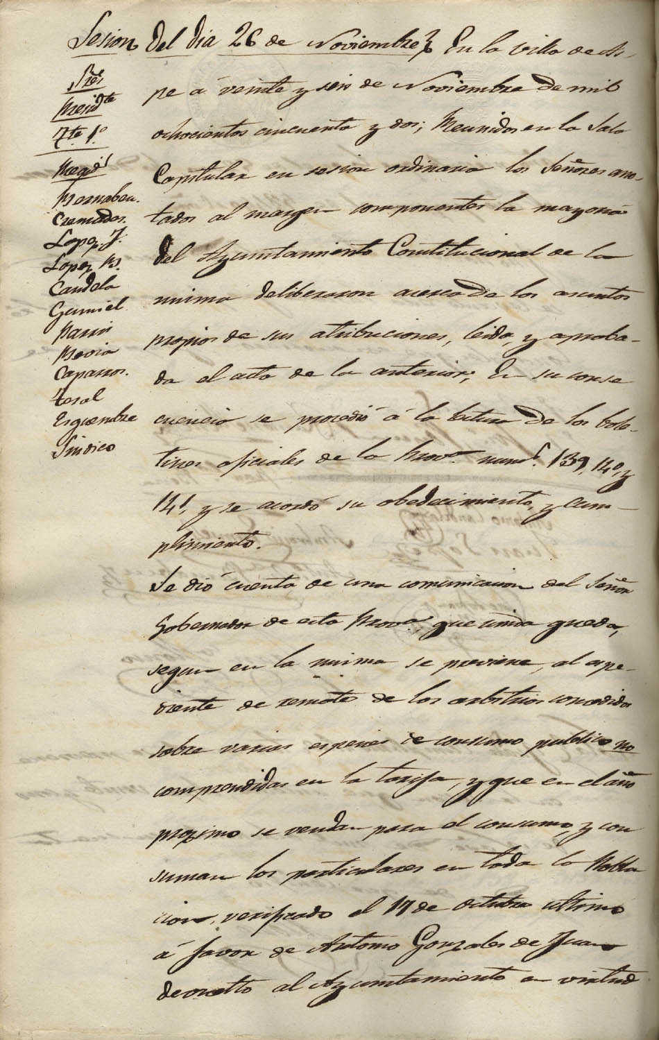Actas de Pleno, 1852