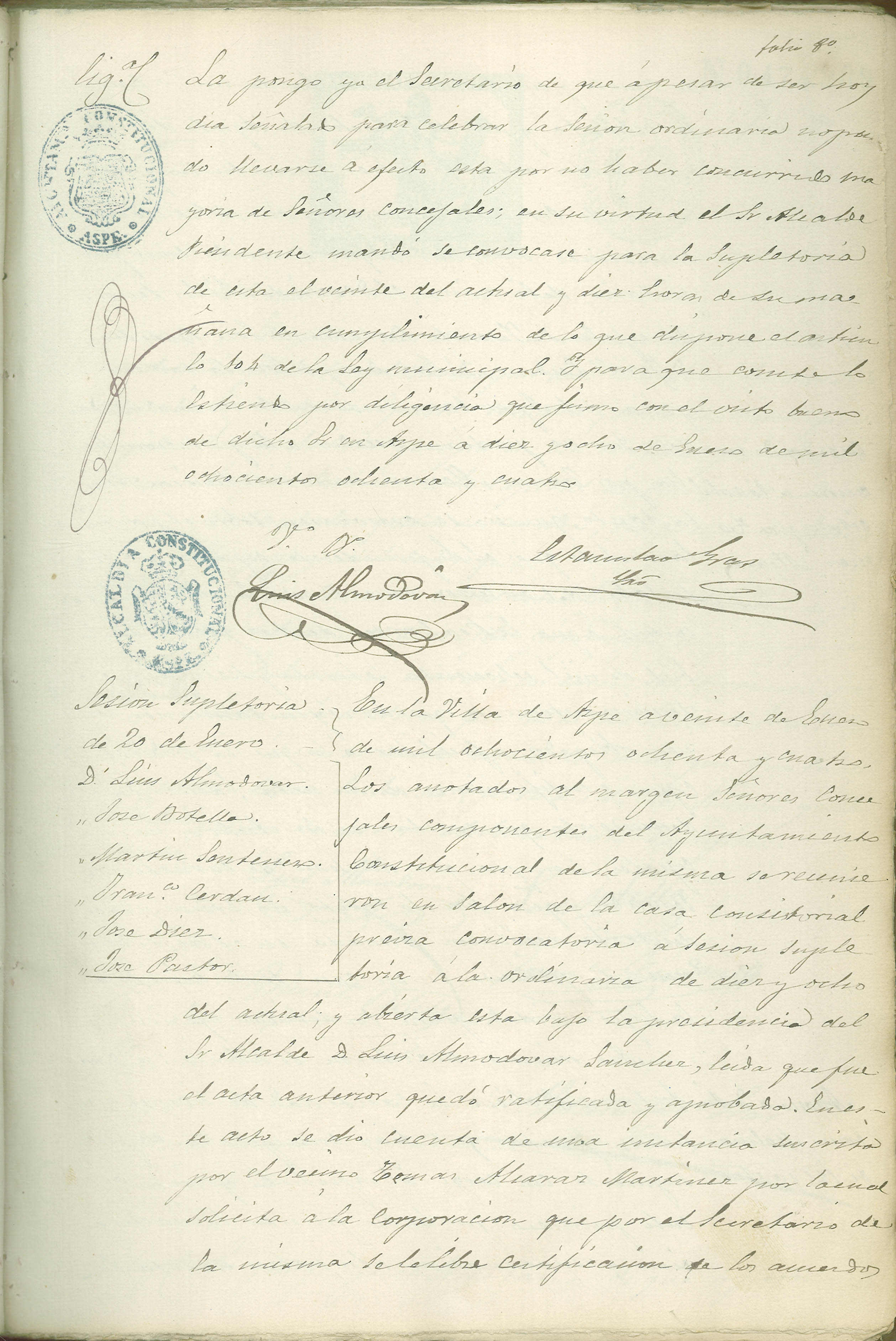 Actas de Pleno, 1884-1885