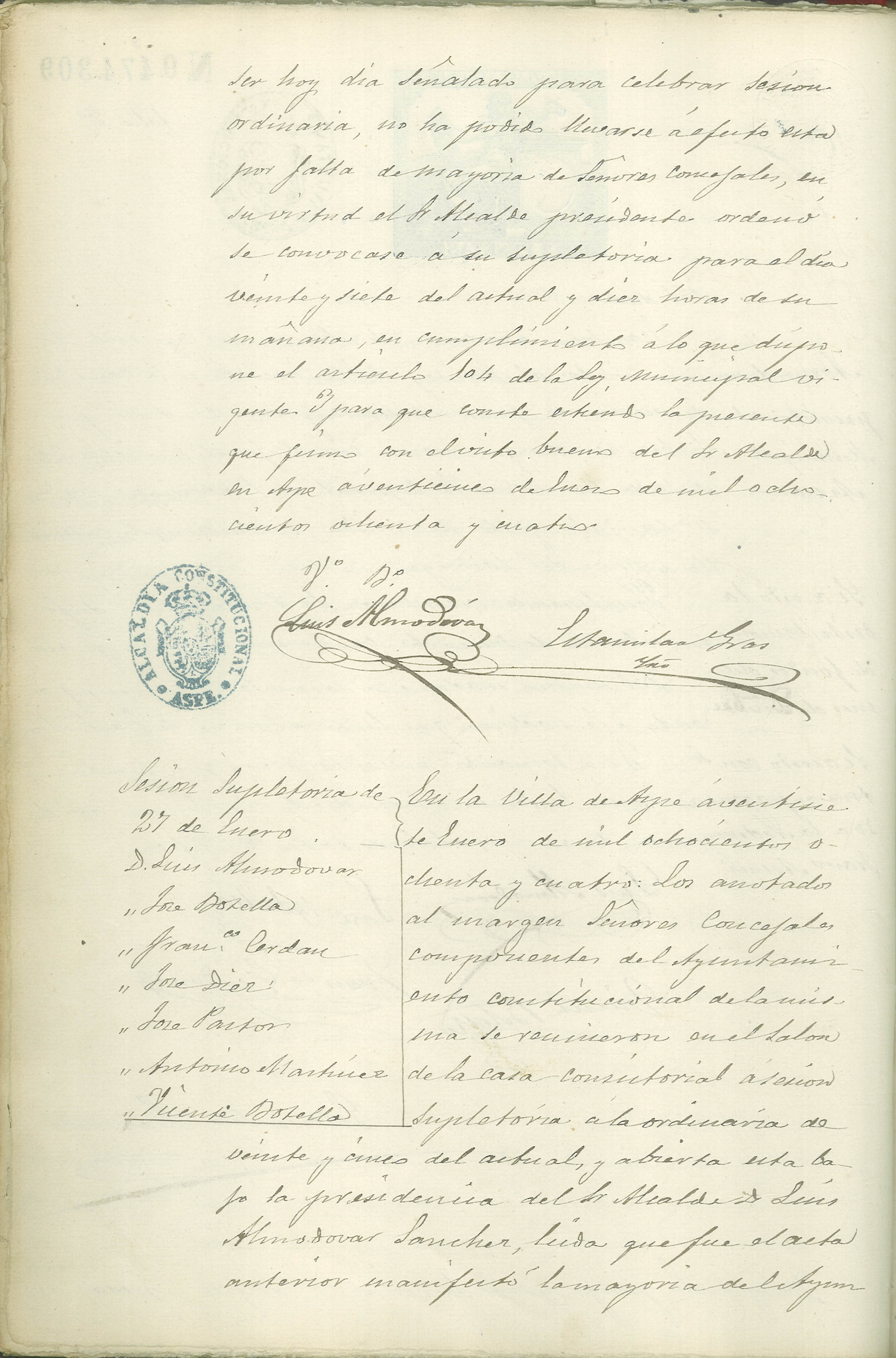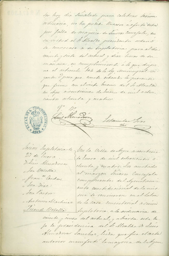 Actas de Pleno, 1884-1885